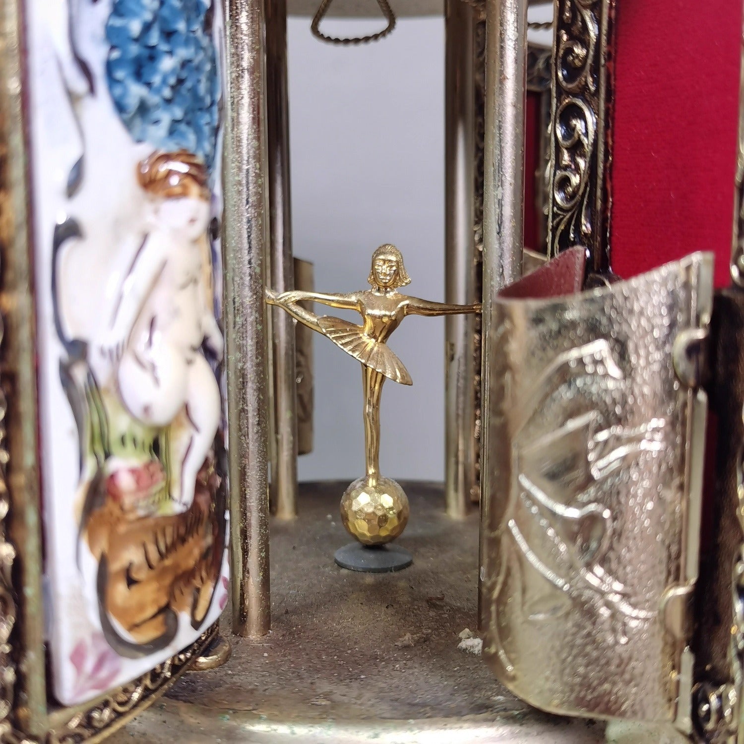 Press the delicate side button to release one of the six hidden doors—each designed to hold lipsticks 💄, cigars 🎩, or precious trinkets.