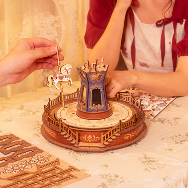 🎠Carousel music box diy handmade decompression octave box,Building block toys