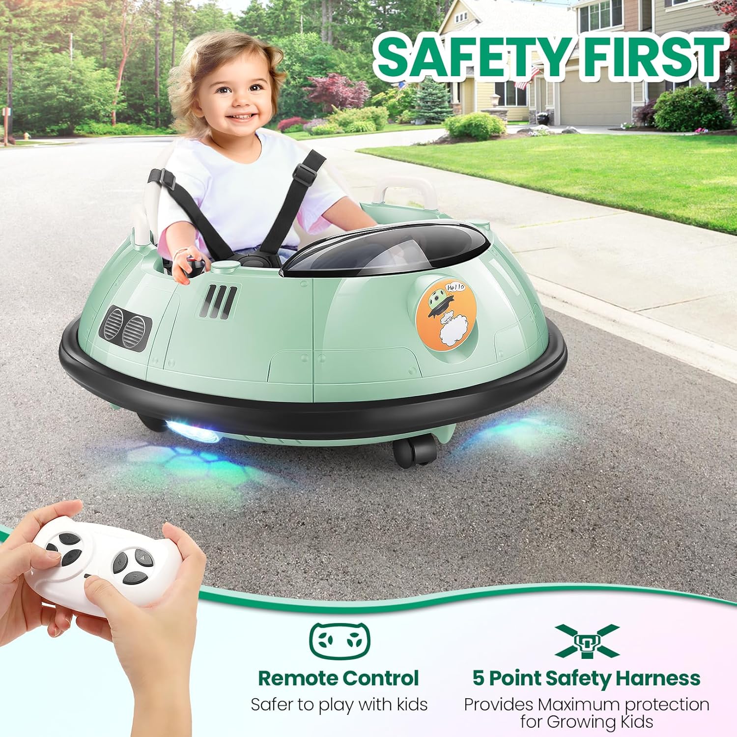 - 【360° Safety Bumper Car Design】 Premium 5-point harness + soft collision guards. Ergonomic comfort seat with anti-slip footrest. Enhanced protection for your little driver's extended playtime fun!